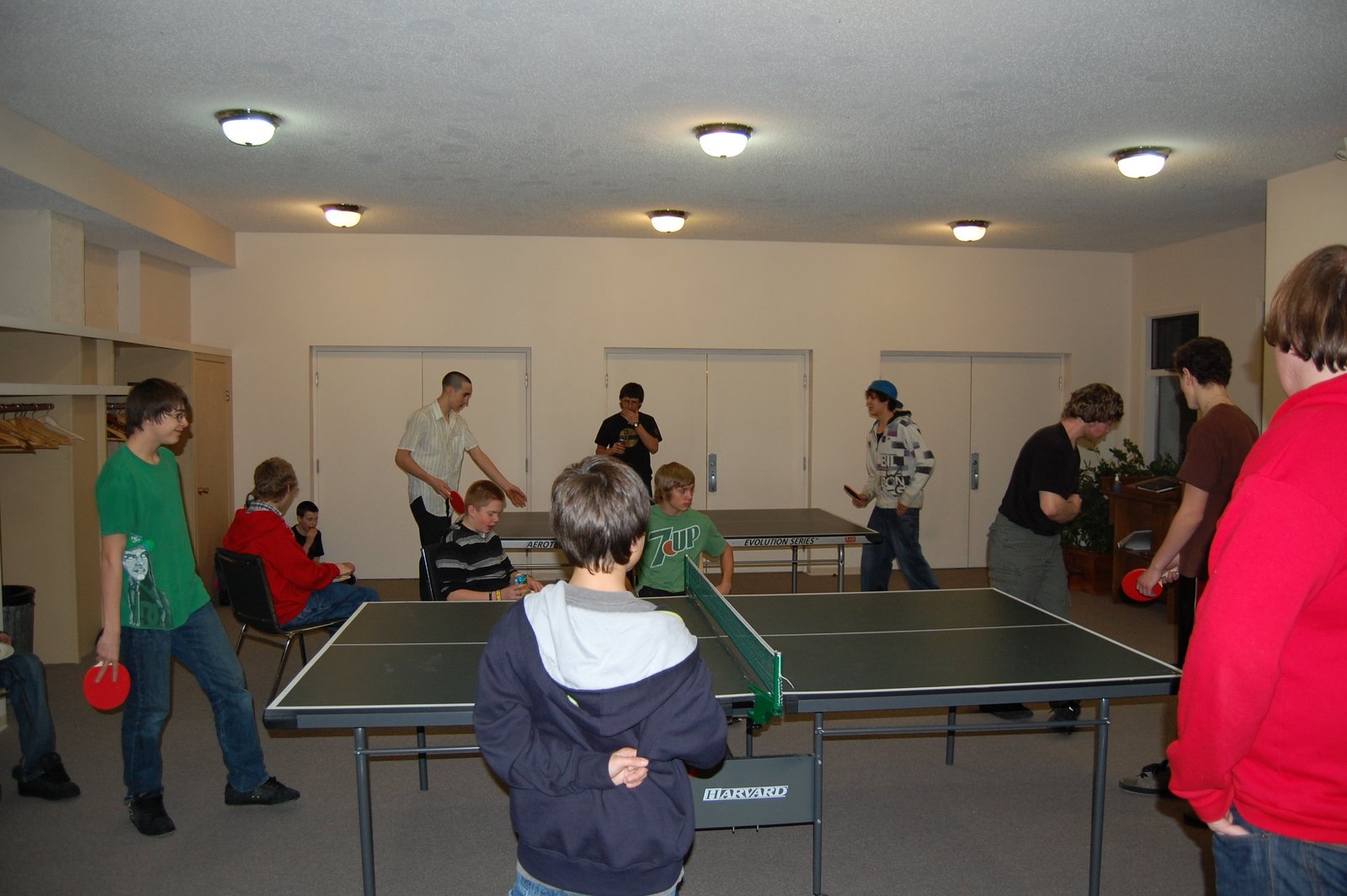 The one bracket had Spencer, Nathan and Landon in the Semi's and the other side of the bracket had Zach, Max and Jordan. The Ping Pong was better this year, it looked as if guys had been practising. Both Max and Nathan nearly knocked out Jordan and Spencer, there was some good Ping Pong being played. It was a great night, we had snacks and Ping Pong for most of the night.(Pizza, chips, cookies, pop, and deep fried Mars bars! Thanks Sam!) Once we were done with Ping Pong we headed into the gym to play some Murderball. After a couple games of Murderball we had and impromptu game of free for all murderball it was awesome! Balls flying everywhere it was great! Anyways good night all around.